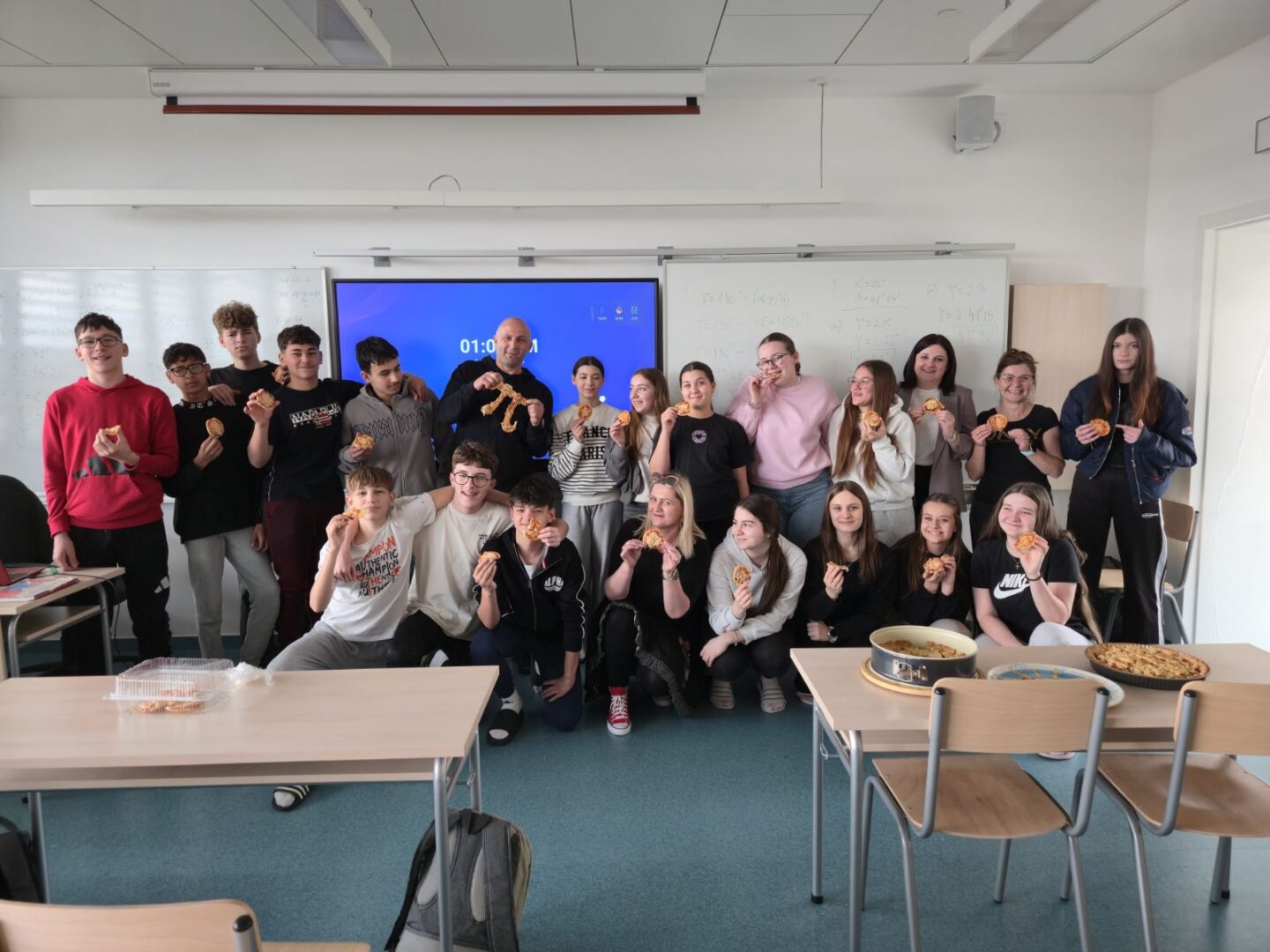 Upravo nas takve misli podsjećaju koliko je matematika važna za razumijevanje svijeta oko nas. Proslavu je dodatno uljepšala naša učenica Stela Đukić koja je pripremila ukusne i mirisne slastice. Njihov primamljiv miris širio se hodnikom i privukao posebne goste u naš razred – ravnatelja škole Josipa Tominca, tajnicu škole Kristinu te pomoćnicu Suzanu, koji su rado podijelili s nama ovaj slatki matematički trenutak.
