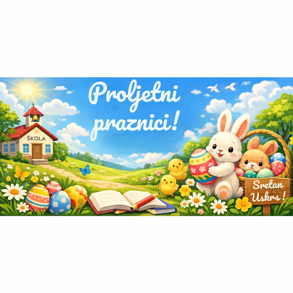 Proljetni odmor učenika počinje u ponedjeljak, 30.3. 2026. i završava 6. 4. 2026. Učenici se na nastavu vraćaju u utorak, 7. 4. 2026. prema redovnom rasporedu.