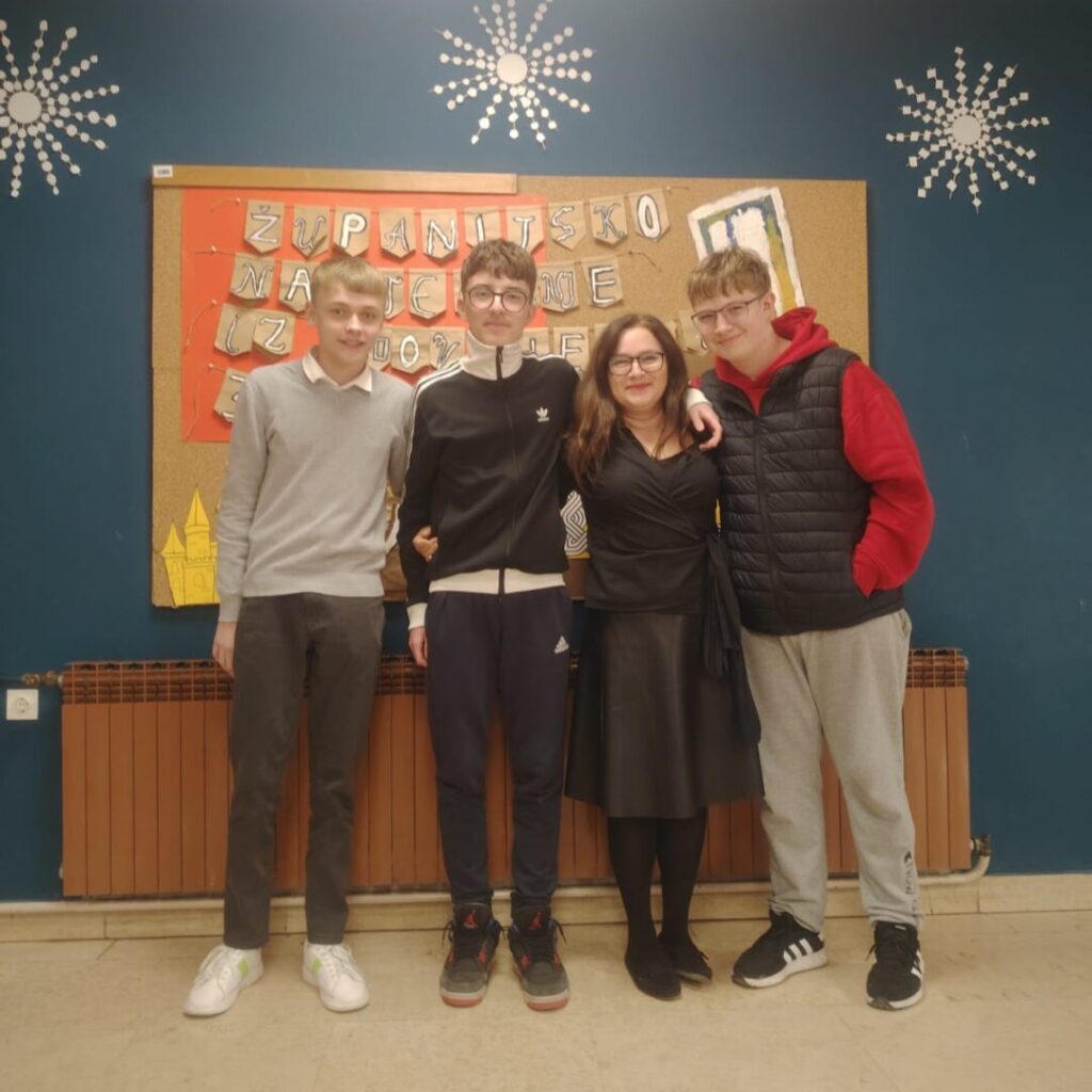U utorak, 3. ožujka 2026., učenici osmog razreda Bartol Bogdanić, Niko Barušić i Marko Terešak u pratnji mentorice Kristine Sertić-Pelc, sudjelovali su na županijskom natjecanju iz povijesti.